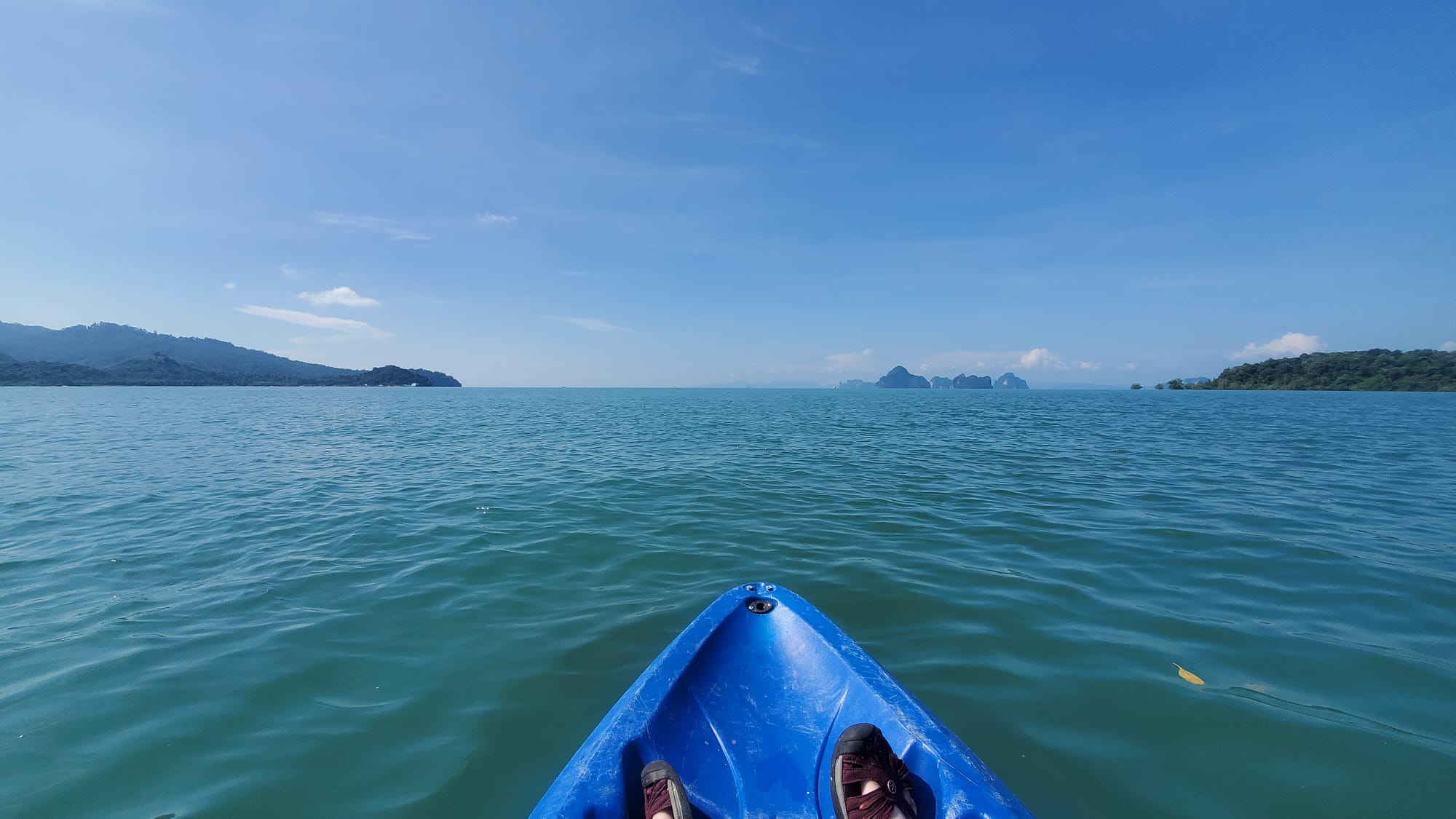 Earlier the same day I’d partially scratched the itch to be in the water by going on a kayak tour through the neighboring mangroves. I thought that would be enough, paddling out into an extending sheet of blue dotted with outcrops of the sheer limestone cliffs for which the southwestern coast of Thailand is known.